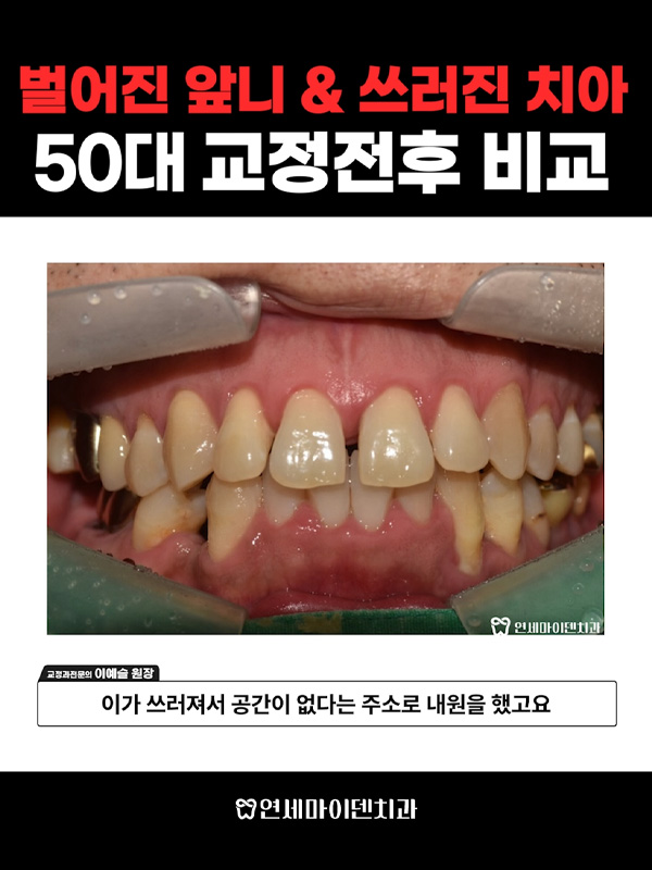 제목 벌어진 앞니&쓰러진 치아 50대 치아교정 전후비교