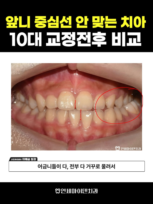 제목 앞니 중심선 안 맞는 10대 치아교정 전후비교
