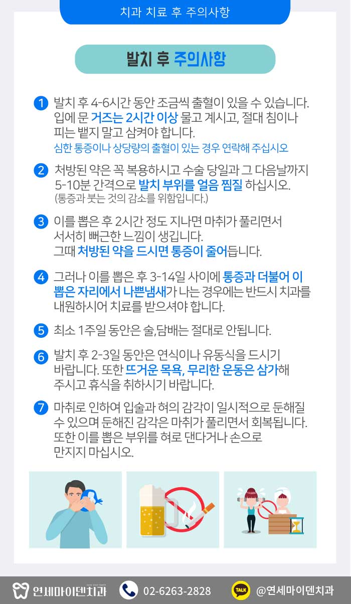 수술부위는 칫솔질을 피해주시고 식염수로 조심스럽게 헹궈주시기 바랍니다.